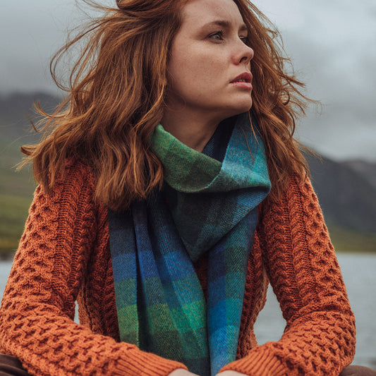 Turquoise, Green & Blue Block Long Lambswool Scarf